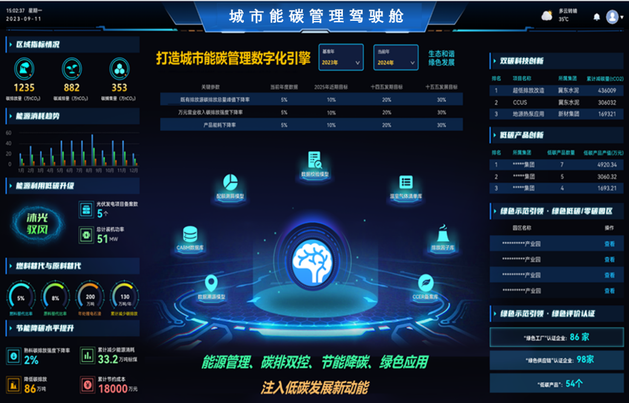 在國家雙碳戰(zhàn)略目標的整體背景下,圍繞能源革命及雙碳使命總體要求,區(qū)域能碳底數(shù)缺乏統(tǒng)一計量,雙控轉向無抓手,能源雙碳管理無連接,能碳數(shù)據(jù)應用薄弱,信息孤島現(xiàn)象嚴重,基于上述重點需求,建立“1張圖、1套艙、N應用”的城市能碳綜合管理平臺,通過鏈接能源管理,融匯雙碳管理體系,打造“能+碳”雙重管理應用體系,摸清區(qū)域能碳底數(shù),實現(xiàn)碳動態(tài)平衡,提升達峰中和管理效率,助力推動能耗雙控逐步轉向碳排放雙控,建立節(jié)能降碳有效機制,構建綠色低碳循環(huán)經(jīng)濟體系,信息化助力城市零碳目標的實現(xiàn)。